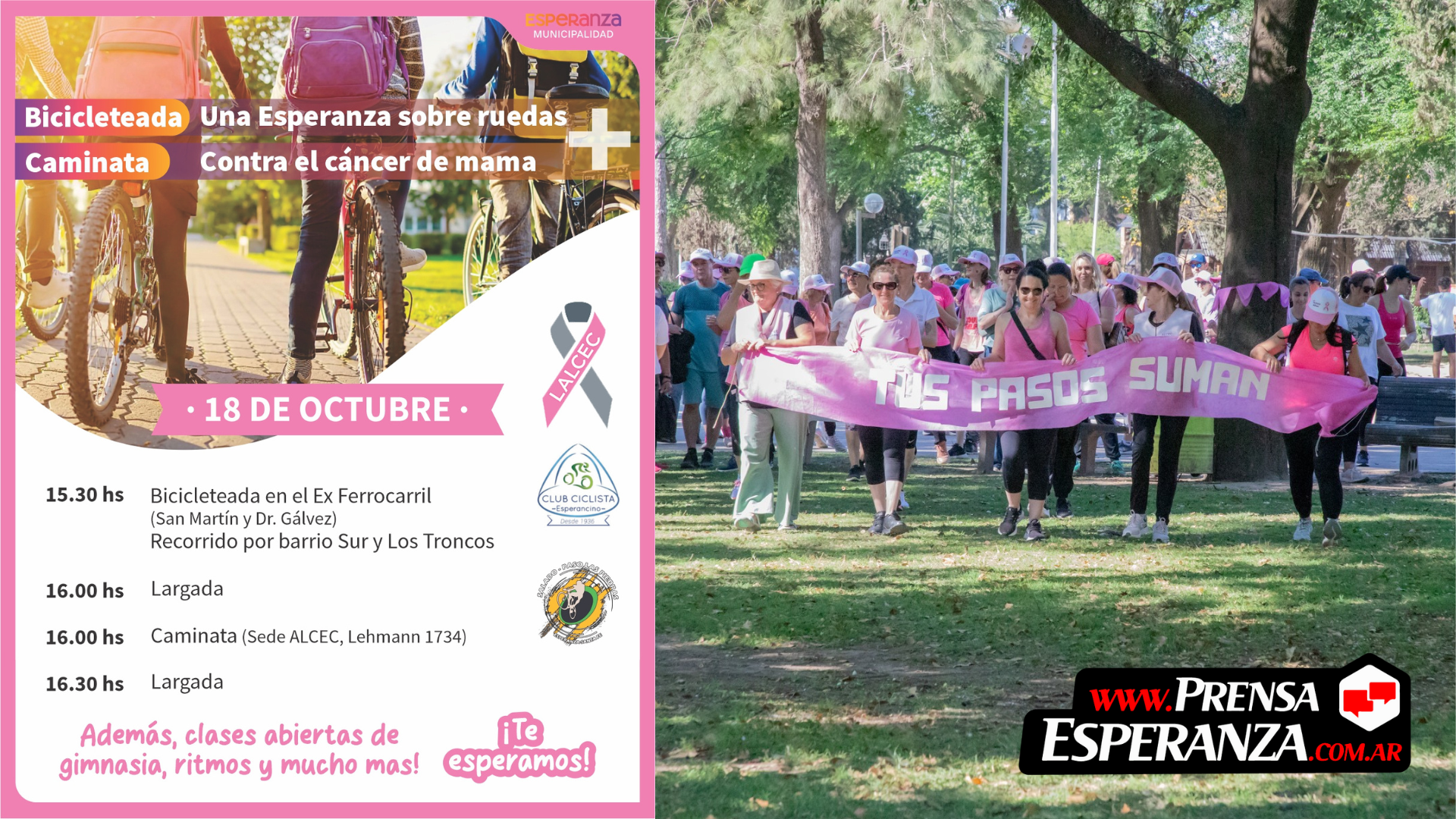 La Municipalidad de Esperanza, junto al ALCEC (Asociación de Lucha Contra el Cáncer Esperanza), invita a toda la comunidad a participar este sábado de una jornada deportiva y solidaria en el marco del Mes de la Prevención del Cáncer de Mama.