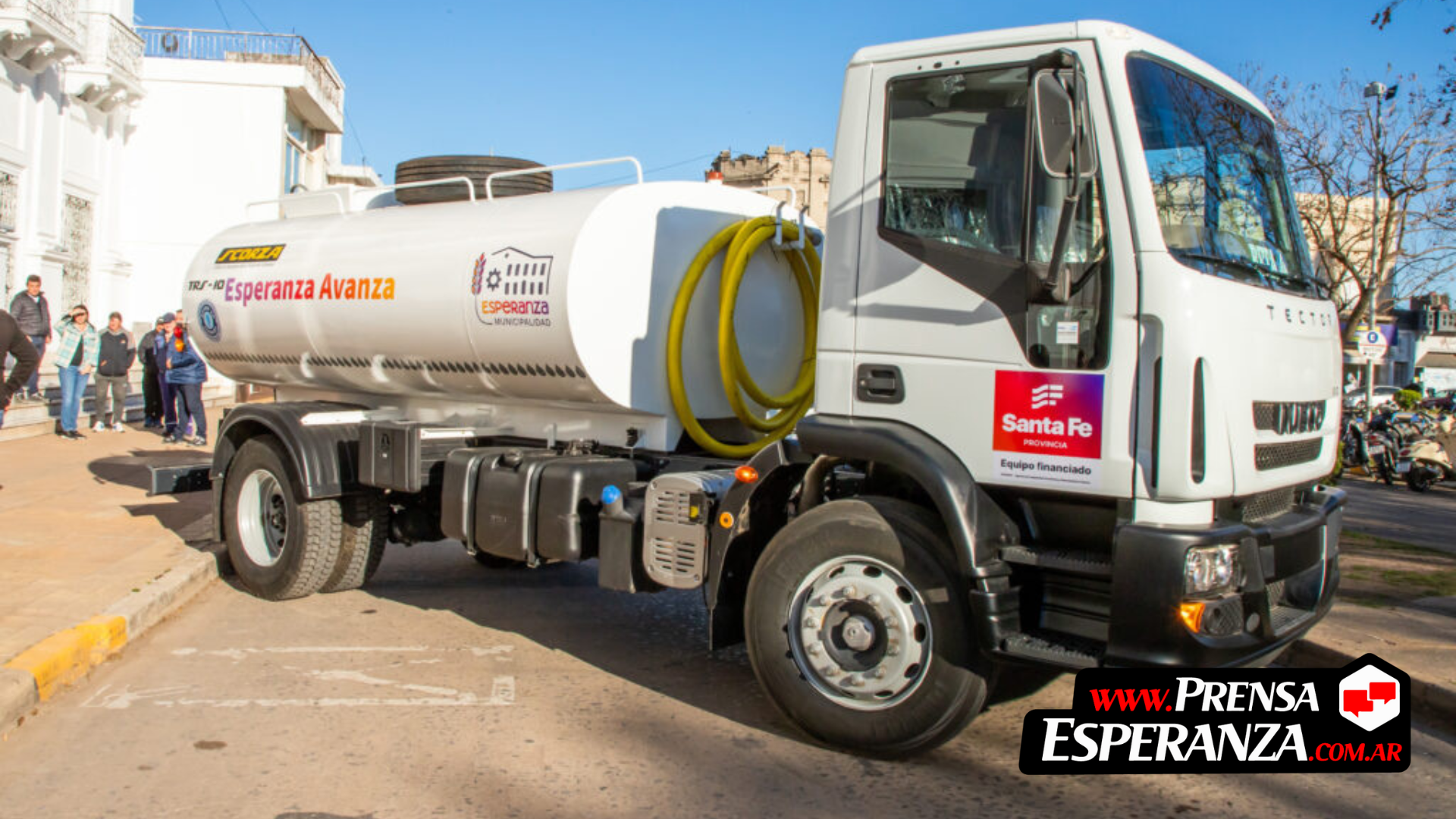 El municipio presentó este jueves un camión regador 0 km, adquirido con una inversión de $150.000.000 a través del Programa Municipal de Inversiones (PROMUDI), dependiente del Ministerio de Economía provincial. La presentación estuvo encabezada por el intendente Rodrigo Müller y la secretaria de Ambiente y Servicios Públicos, Lorena Domig, frente al Palacio Municipal.