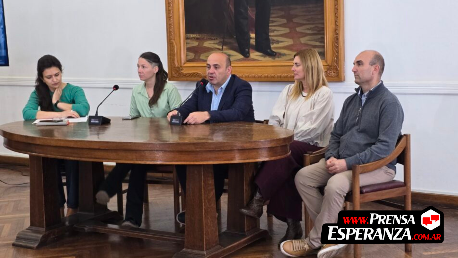 El intendente de Esperanza, Rodrigo Müller, acompañado por secretarios de su gabinete, brindó una conferencia de prensa para evaluar la 81ª Fiesta Nacional de la Agricultura. Participaron las secretarias de Cultura y Educación, María Laura López; de Ambiente y Servicios Públicos, Lorena Domig; de Innovación y Desarrollo Económico, María Victoria Nagel; y el secretario de Control y Seguridad, César Gioria.
