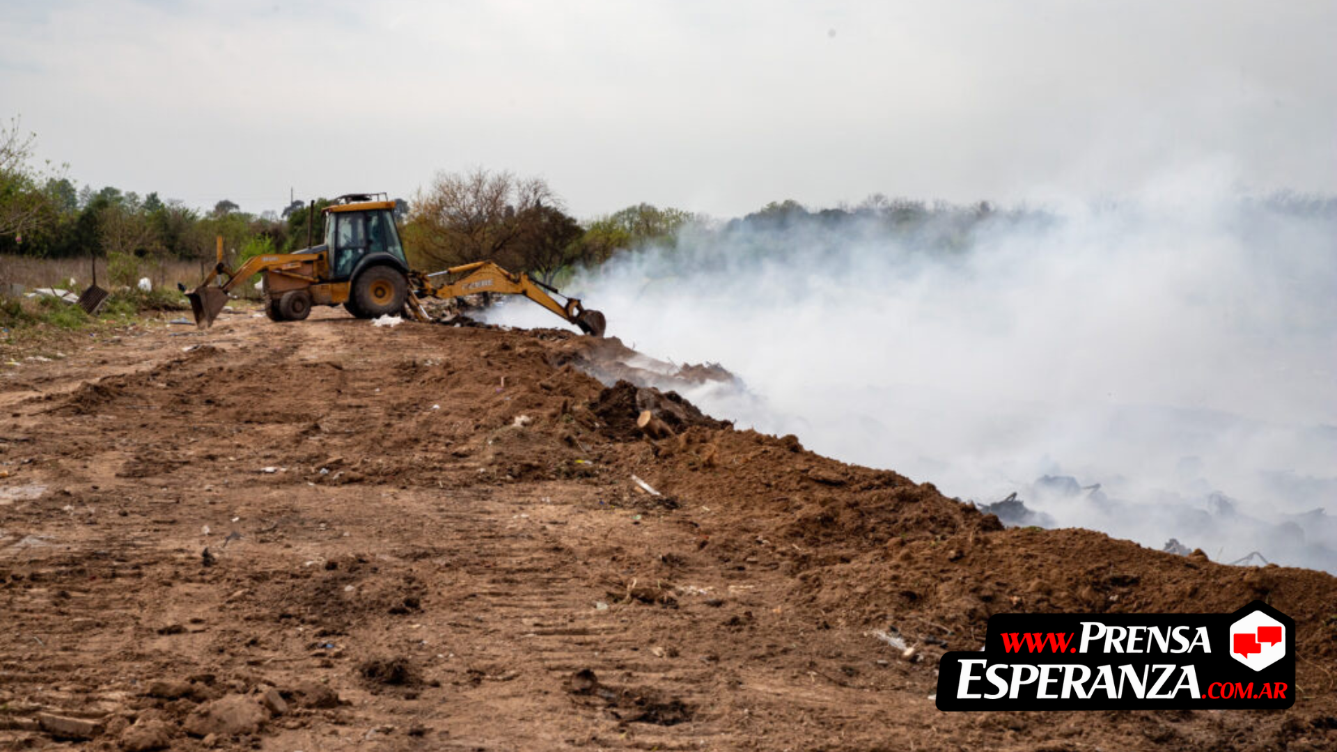La Municipalidad de Esperanza, junto a Bomberos Voluntarios, lleva adelante un amplio operativo para controlar el incendio que se produjo en una cava privada ubicada en la intersección de calles Rivadavia y Cavour, en barrio La Orilla.