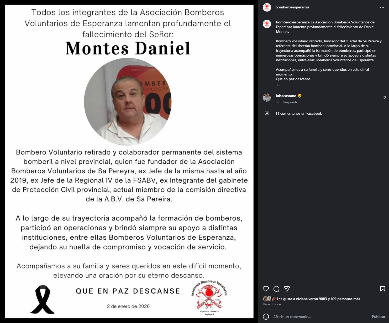 Según las primeras informaciones, las motos colisionaron de manera frontal a pocos metros del puente que conecta ambas localidades. Como consecuencia del violento impacto, uno de los conductores perdió la vida en el lugar. La víctima fue identificada como Daniel Montes, ex jefe de Bomberos Voluntarios de Sa Pereira, fundador de la institución y referente histórico del servicio bomberil, con más de 30 años de compromiso y vocación al servicio de la comunidad.