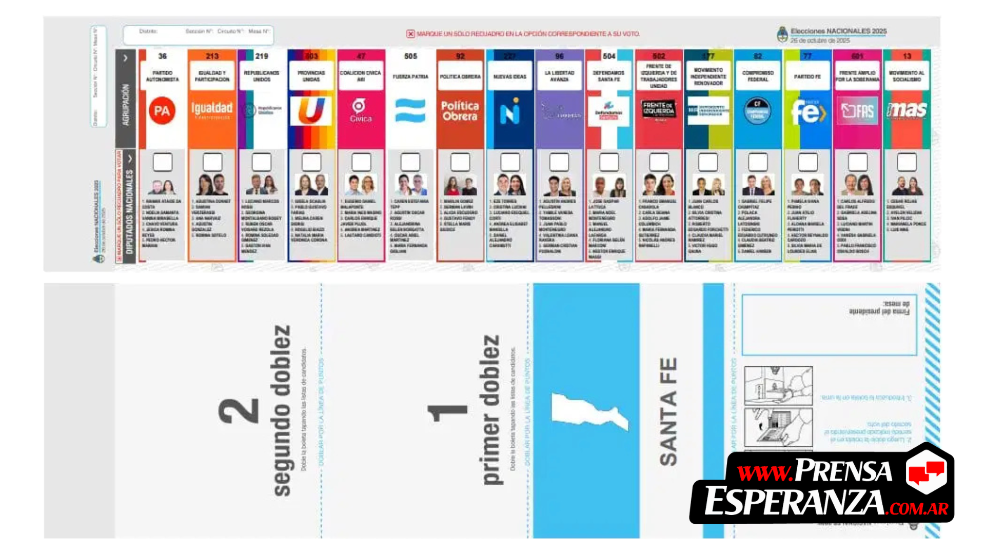 El Tribunal Electoral de Santa Fe difundió las boletas definitivas que los ciudadanos encontrarán en los cuartos oscuros el próximo 26 de octubre, cuando se elijan los nuevos diputados nacionales. Se trata de la primera elección nacional en la que se implementará en todo el país la Boleta Única Papel (BUP).